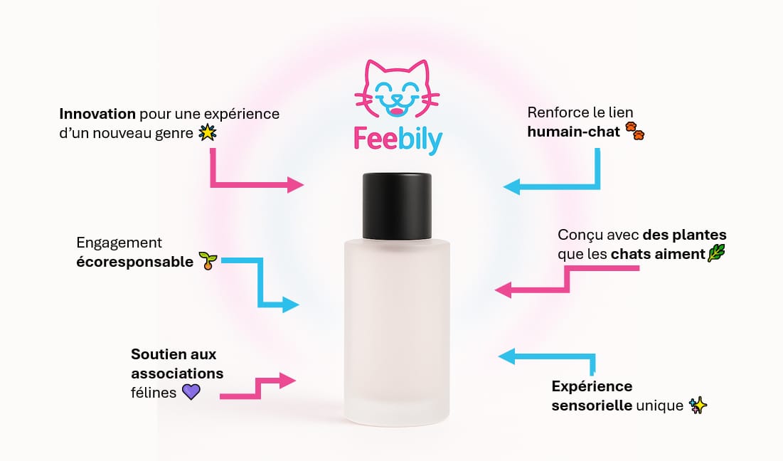 Alors, Feebily, c’est avant tout un parfum agréable à porter pour nous, les humains. Il dégage une odeur fraîche, naturelle, légèrement herbacée, avec des notes très douces.