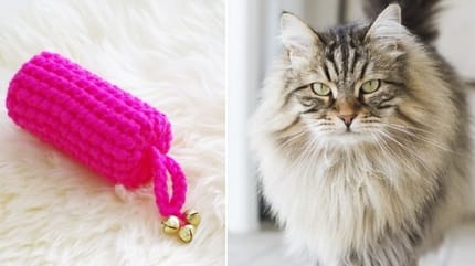 Précision : Le jouet est réalisé avec un crochet n° 6 et de la laine qui se crochète elle aussi en 6. Et voilà ! Votre chat peut maintenant s’amuser dans la maison ou dans le jardin avec son nouveau jouet préféré !