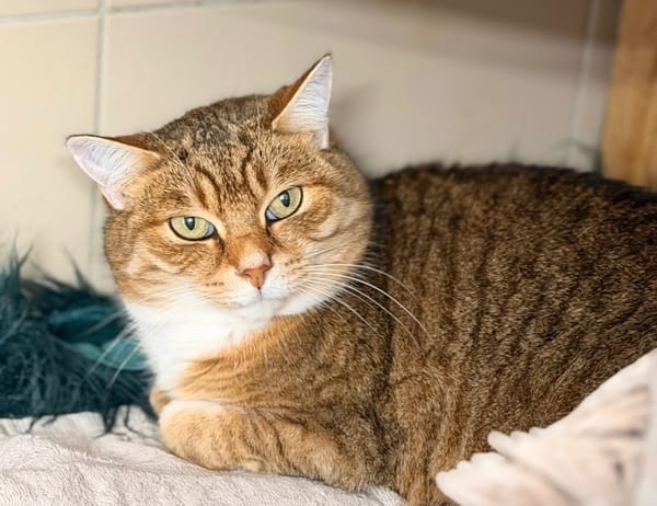 Il est sociable avec les autres chats mais il ne sera pas placé avec des jeunes enfants et un chien.