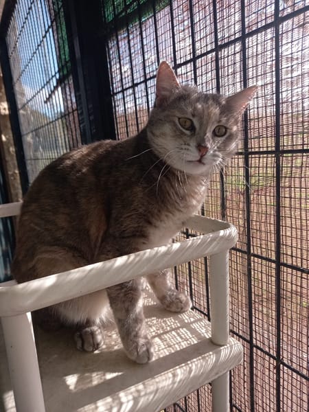 C'est une chatte trÚs affectueuse, sociable et gentille malgré ce qu'elle a pu traverser.