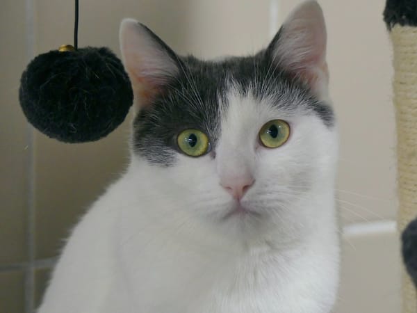 Hei Hei est arrivée au refuge suite à une enquête, il vivait avec beaucoup d'autres chats dans de mauvaises conditions. Il est encore timide mais très curieux et joueur.