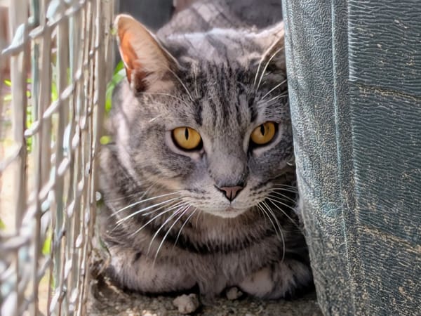 Witch est un loulou assez craintif qui aura besoin de temps pour se dévoiler pleinement. Il aura besoin d'adoptants patients et bienveillants, prêts à ne pas avoir un chat câlin et prêts à lui laisser beaucoup d'espace.
