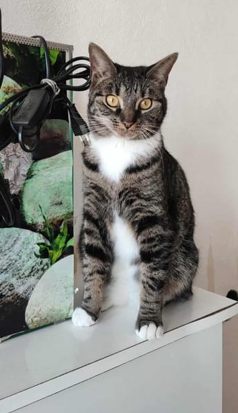Adopté fin 2023, Upsie et de retour chez tata Patricia, car elle se faisait malmener de plus en plus par les chats du foyer. Les adoptants se sont tournés vers nous et c'est tout naturellement que Patricia lui a ouvert sa porte.