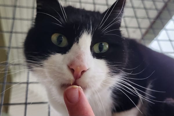 Chaque jour, il fait un pas de plus. D’abord à distance, puis un peu plus près… Et maintenant, il vient délicatement lécher le stick du bout des doigts, comme pour dire qu’il commence à faire confiance. Gourmand dans l’âme, Rodo ne résiste pas longtemps à une friandise, et c’est souvent son estomac qui lui donne le courage d’avancer. Derrière sa petite timidité se cache un chat sensible et plein de douceur, qui ne demande qu’un peu de patience et beaucoup d’amour pour révéler tout son potentiel.
