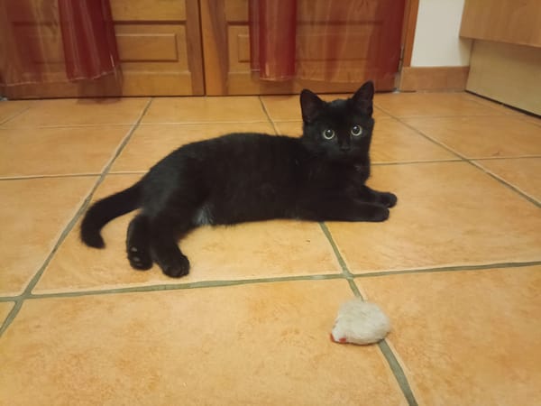 Il a été recueilli dehors avec sa maman. C est un petit chaton plein de vie et très joueur!