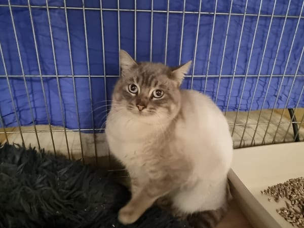 15/12/25 : Fiyero vient d'arriver de fourrière. C'est un chat qui se montre sociable avec l'humain. Nous apprenons encore à le connaitre. Il a été opéré d'une hernie ombilicale et se remet très bien de la chirurgie.