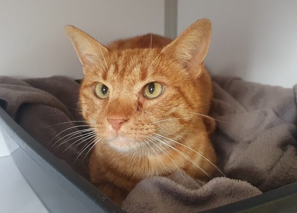 Le beau Crevette est un amour de chat, affectueux, joueur et gourmand lorsqu'il est en confiance. Porteur sain du sida du chat, son adoption est sous dispositif SOS.