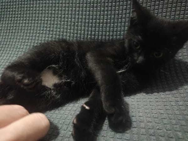 Ako est un chaton mâle de bientôt 3 mois récupéré suite à une sollicitation d'une commune avec sa fratrie.