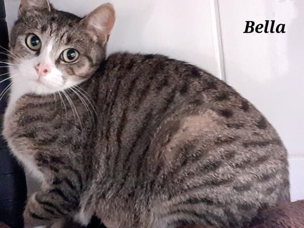 Bella a été trouvée dans la rue avec ses chatons. C'est une adorable minette mais qui se trouve encore un peu méfiante lorsqu'elle ne connait pas son environnement.
