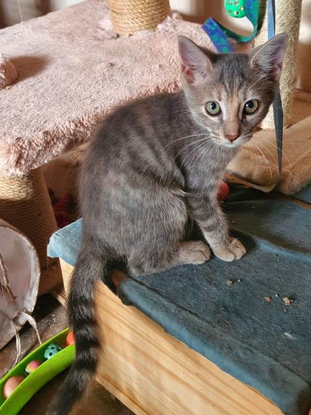 Vous savez, les chatons donnés contre “bons soins” ?? Et bien voila, les soins n’étaient pas si bons que ça et le caprice des gens passé, cette petite puce a bien failli se retrouver à la rue. Pourtant, elle est jolie, en bonne santé, câline, joueuse et sociable. Elle mérite d’avoir une gentille famille sérieuse et engagée.