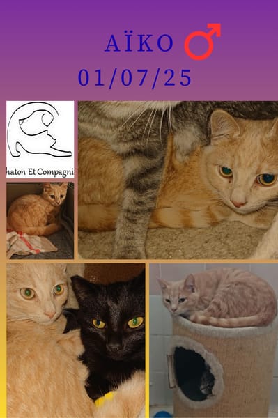 Aïko est né le 01/07/25, arrivé à l'âge de presque 3 mois, très timide, il progresse doucement. Il recherche un foyer très calme, qui prendra le temps d'écouter ses besoins. Il est identifié, castré, vacciné, déparasité, testé fiv et felv négatif.