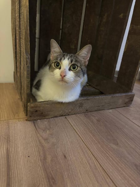 Voici Okala, une jolie chatte pleine de tendresse et de douceur. Sociable, câline et très proche de l’humain, elle aime la présence, les caresses, et surtout qu’on prenne le temps d’être avec elle.
