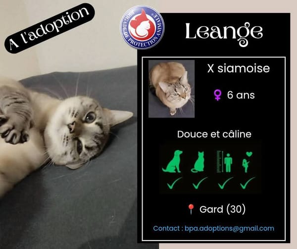 Avertissement : Les informations concernant les animaux à adopter sont fournies par les refuges et associations qui les ont pris en charge. Nous n’effectuons aucune vérification sur l’exactitude de ces informations. Toutes ces informations sont à vérifier avec le refuge concerné.