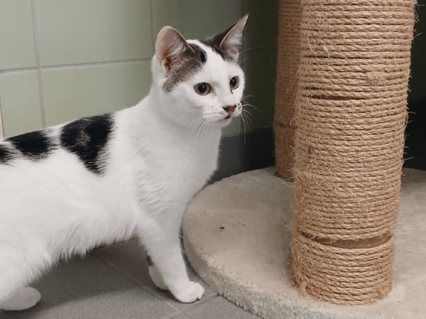 C'est une minette bien dans ses pattes qui s'adaptera facilement dans son nouveau foyer. Elle est joueuse.