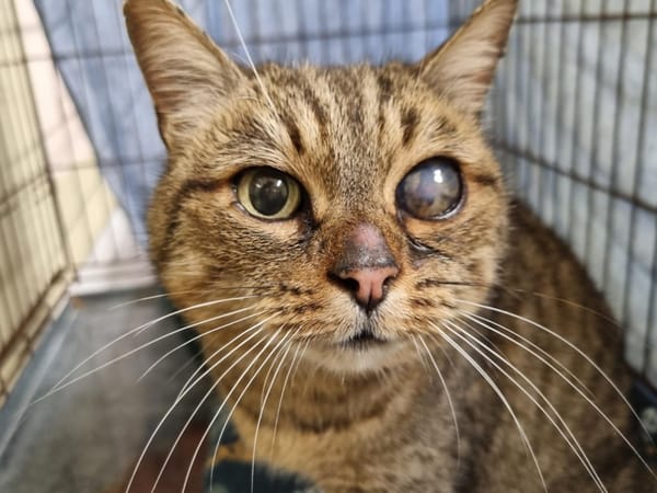 29/12/25 : Paillette vient d'arriver de fourrière. C'est une chatte câline et calme. Elle sera bientôt vue par le vétérinaire pour son ulcère à l'oeil.