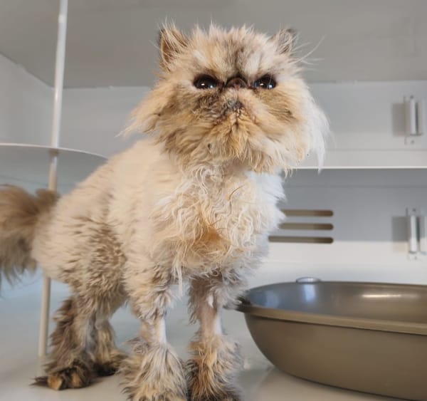 Paris est un persan en piteux état qui accumule les pathologies liées à sa race. Paris est en sos car elle a un souffle cardiaque et une maladie inflammatoire de l'intestin.