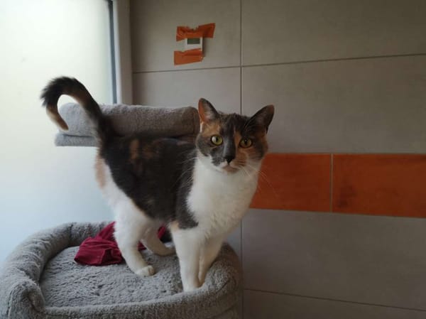 Camaïeu est arrivée de fourrière. C'est une chatte très sociable, présente, câline et active.