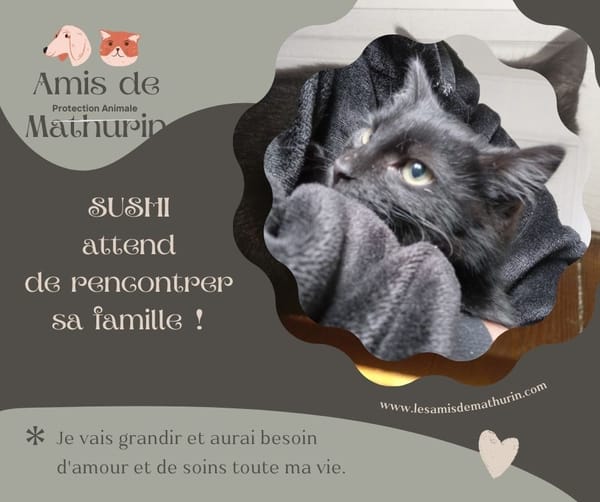 SUSHI n’attend pas un coup de tête, mais une adoption réfléchie, sérieuse et bienveillante. Une famille capable d’offrir du temps, du calme… et beaucoup d’amour