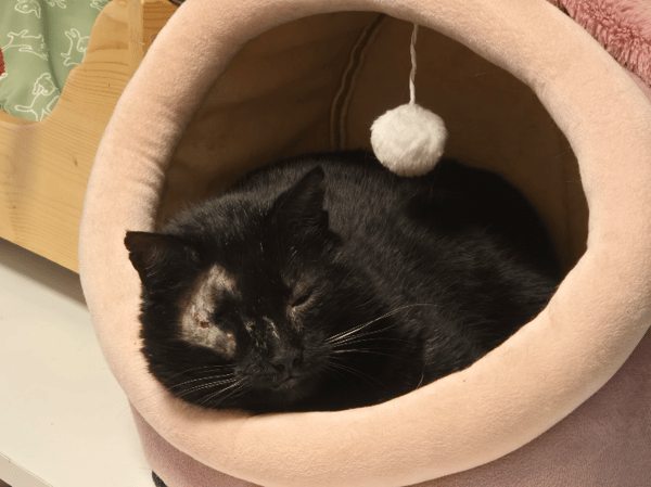 Un chat au grand cœur, résilient et attendrissant, qui mérite une belle fin de vie entourée d’amour.