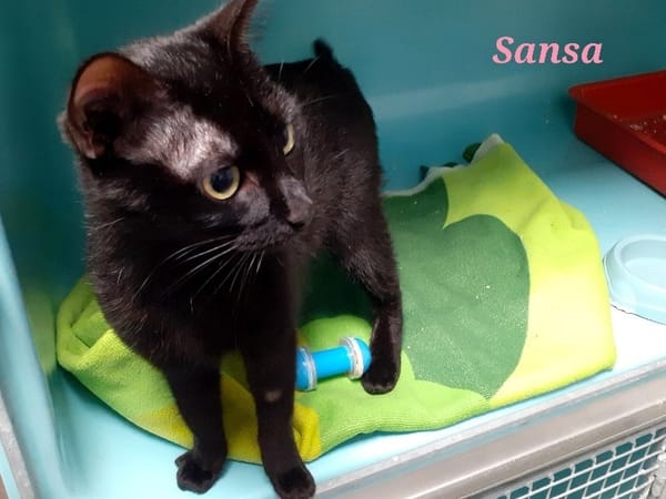 Sansa est arrivée de la fourrière (trouvée errante sur la voie publique) et donc d'un passé inconnu.