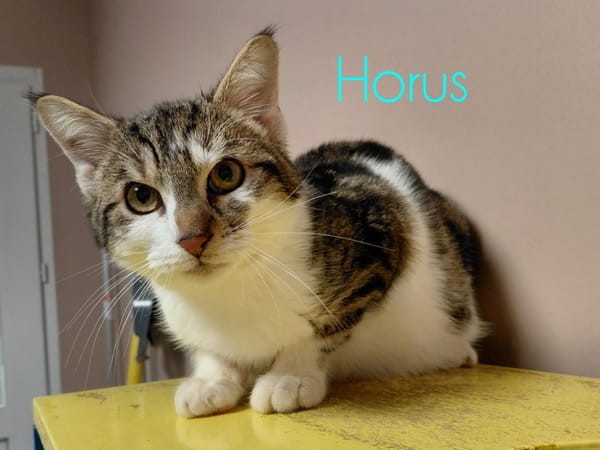 Horus est propre et manipulable. Il pourra vivre avec d'autres chats ainsi qu'avec des enfants. Nous ne connaissons pas ses ententes avec les chiens mais étant donné son jeune âge, il pourra très certainement cohabiter avec eux.