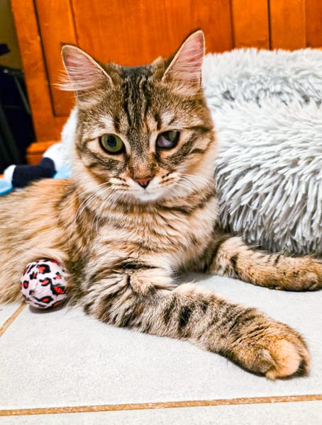 C’est une minette très douce, extrêmement câline et joueuse, qui apprécie la présence humaine et les moments de tendresse. Elle aura toutefois besoin d’un environnement calme, stable et sécurisant, ainsi que de patience les premiers jours, le temps de prendre ses marques et de construire une relation de confiance. Une fois ce lien créé, les ronrons et les câlins sont au rendez-vous 💞