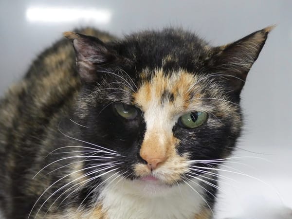 Elle a subi de nombreuses mésaventures par le passé, elle est en SOS adoption car elle aura probablement besoin d'un suivi vétérinaire régulier en raison de soucis dentaires.