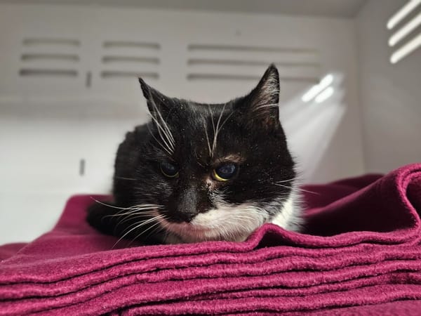 Minette souffre d'une cécité partielle à totale ce qui peut la rendre plus craintive à l'approche de la main, il faudra donc aller vers elle avec beaucoup de douceur.