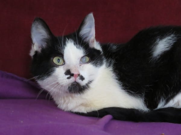 Ne vous arrêtez pas à son physique : il a eu une conjonctivite aux yeux étant petit qui lui a laisser une cicatrice, une opération a été faite le jour de sa castration et a retrouvé un joli œil. De nouvelles photos seront faites prochainement.