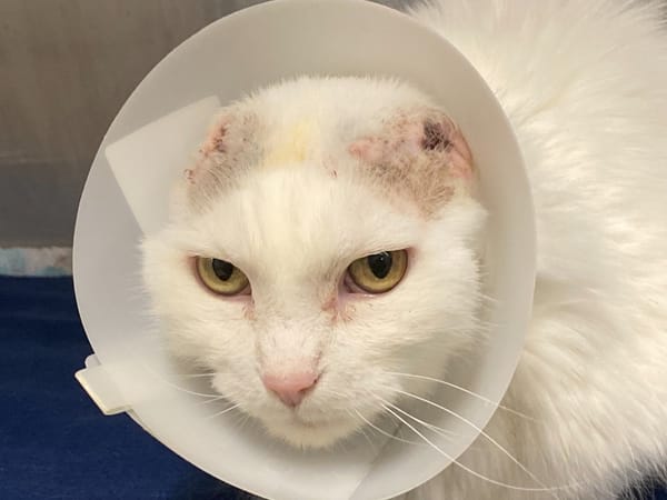 Neige a été abandonnée et elle a dû subir une otectomie. Elle a fini sa convalescence et est maintenant prête à nous quitter.