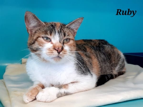Ruby est une minette arrivée d'une autre association très gentille, douce et calme. Elle est manipulable et propre.