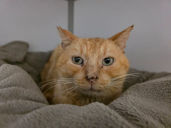 Yole est arrivee chez suite à son délai fourrière, non identifié et pas réclamé, il cherche maintenant une famille qui sera prendre soin de lui. Encore un peu perdue, il apprécie la chaleur et le confort de son panier, il aime également les caresses, des soins vétérinaire sont actuellement en cours.