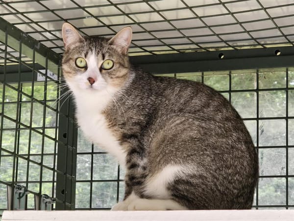Spooky est douce, calme et timide et aura besoin d'un minimum de temps pour faire totalement confiance. Elle est sur la réserve mais pas craintive ni fuyante. Elle observe de son magnifique regard vert et du haut de son hamac situé à l'extérieur de la chatterie. Elle est tranquille et posée mais une fois en confiance dans une maison se révèlera peut-être très joueuse, le refuge ne permettant pas toujours aux chats d'exprimer leur vrai nature. Spoooky apprécie la présence de ses congénères.