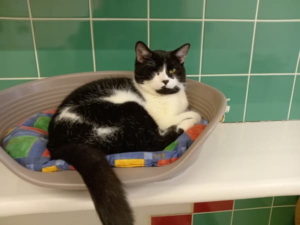 Bangui est très gentil papi borgne toujours en demande de câlins qui sera sûrement un pot de colle.