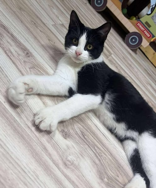 J'ai 5 mois, je suis juste un peu maladroit, c'est ce qui fait mon charme, je suis atteint d'une légère ataxie, je ne suis pas contagieux, cela ne m'empêche pas d'être heureux, je suis beaucoup demandeur de câlins, et très joueur, si toute fois on veut me mettre dans un jardin, celui-ci doit être sécurisé pour mon bien être