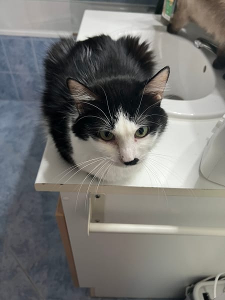 Moufette est une chatte adorable, câline, calme, proche de l'humain elle est gourmande adore la pâtée A tester encore ok chats et ok chiens