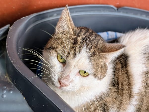 C'est un chat pour l'instant réservé qui se laisse approcher avec douceur.