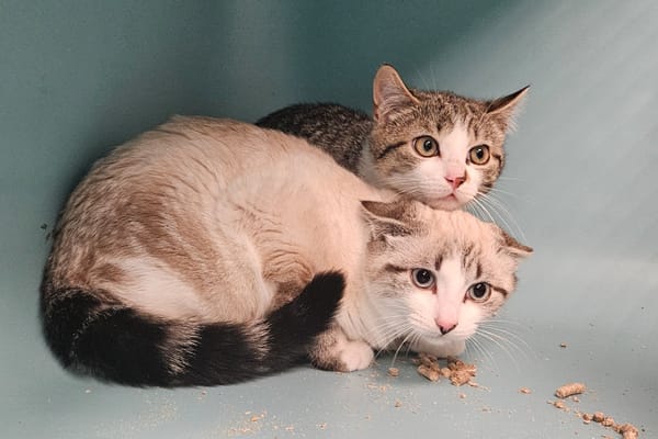 Hinano (blanc tigré) vient de la fourrière, nous ne connaissons donc pas son passé.