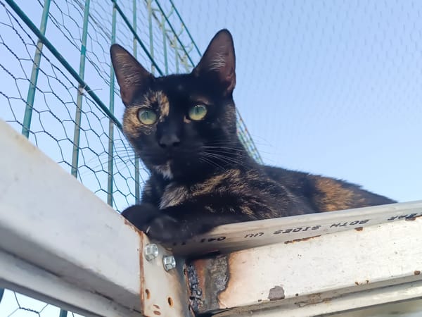 Elle vit depuis au refuge, aux côtés d'autres chats. Elle s'entend bien avec eux. Elle n'est toutefois pas OK chiens.