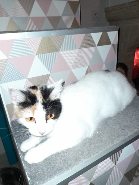 ELLE est propre , joueuse , se laisse prendre ,caresser , secouru de la rue a la Réunion ,autres chats ok , chien a voir