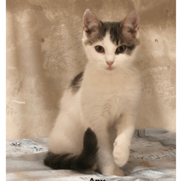 Apy est un jeune chaton mâle de 5 mois, doux et discret. Il est né d'une chatte sauvage dans la rue et a été socialisé en famille d'accueil, il reste encore assez craintif mais n'hésite pas à venir vers l'humain pour le jeu ou la gamelle. Il apprécie les caresses et ronronne.