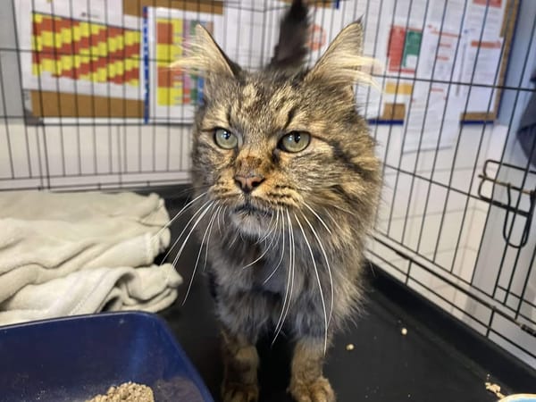 Edward arrive de fourrière nous ne connaissons pas son passé. Mais vus son état général il n'a pas du avoir la vie facile. Son pelage était noué il a d'ailleurs encore besoin de bon brossage. Il ne lui reste qu'un seul croc également, ce qui ne l'empêche pas de s'alimenter normalement.