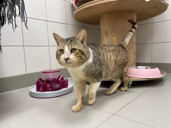 Petit loulou très joyeux, adorant les câlins. Il est aussi très gourmand et adore les gamelles ludiques ! Voilà de quoi l'occuper et occuper vos journées ! il attend sa famille pour la vie avec impatience. Il ne pourra pas être placé avec un autre chat, à moins que celui-ci ne soit FIV car il est lui aussi porteur du FIV. Pour son bien être et celui des autres congénères il devra rester en intérieur strictement du fait de sa positivité FIV.