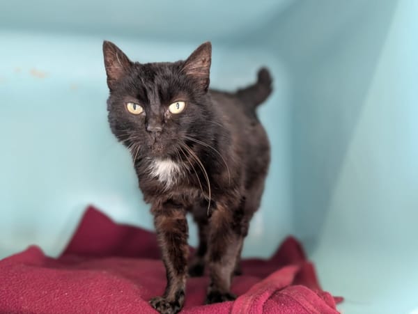 Olympe est une magnifique chatte noire d’un an et demi, au regard doux et plein de tendresse.
