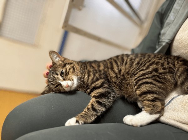Abott est un chat adorable, très demandeur d'affection et de contact, autrement dit un vrai pot de colle ! C'est un loulou joueur, plutôt actif et curieux, il nous suit partout lorsque nous sommes dans la pièce avec lui.