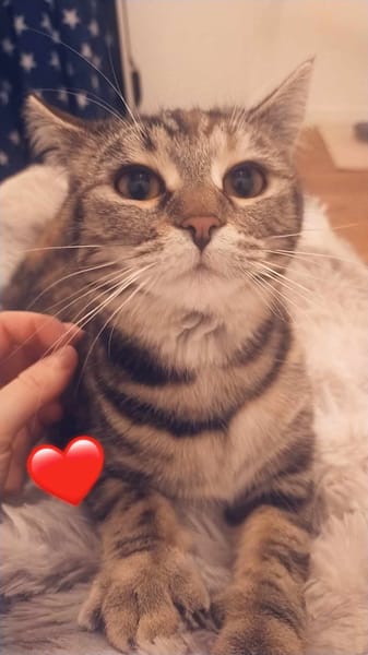 Elle reste encore craintive, elle se laisse approcher et caresser, elle est très gourmande.