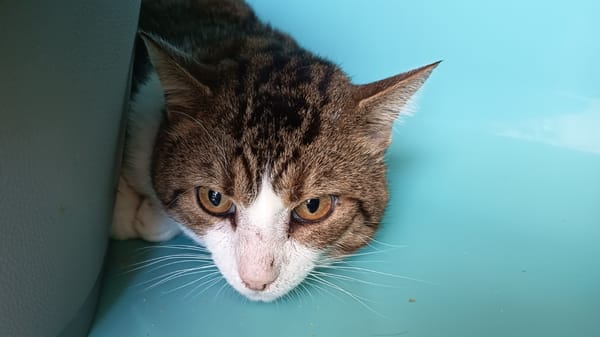 Husk est arrivé chez nous à la suite d'une cession. Il vivait avec une quinzaine d'autres chats.