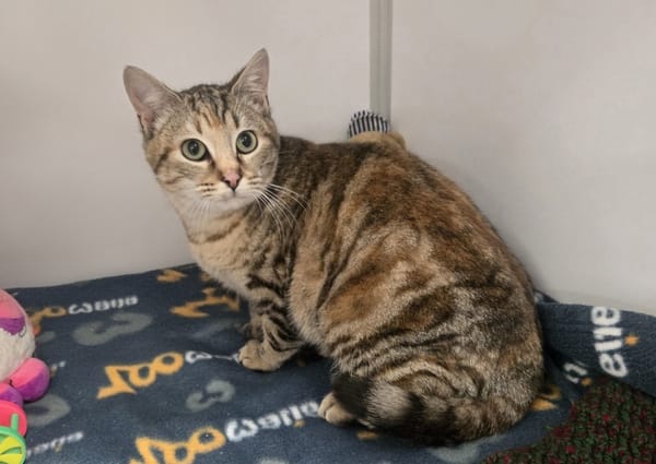 Gaby est une petite chatte timide qui observe beaucoup avant de sortir de sa cachette.