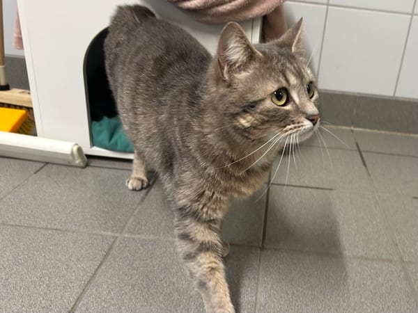 Grisette est une jeune chatte, calme et sociable, elle aime la compagnie humaine ,