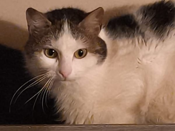 Petit blanc est un chat craintif, il aura besoin de temps pour montrer tout son potentiel, il recherche donc des adoptants prêt à lui offrir.